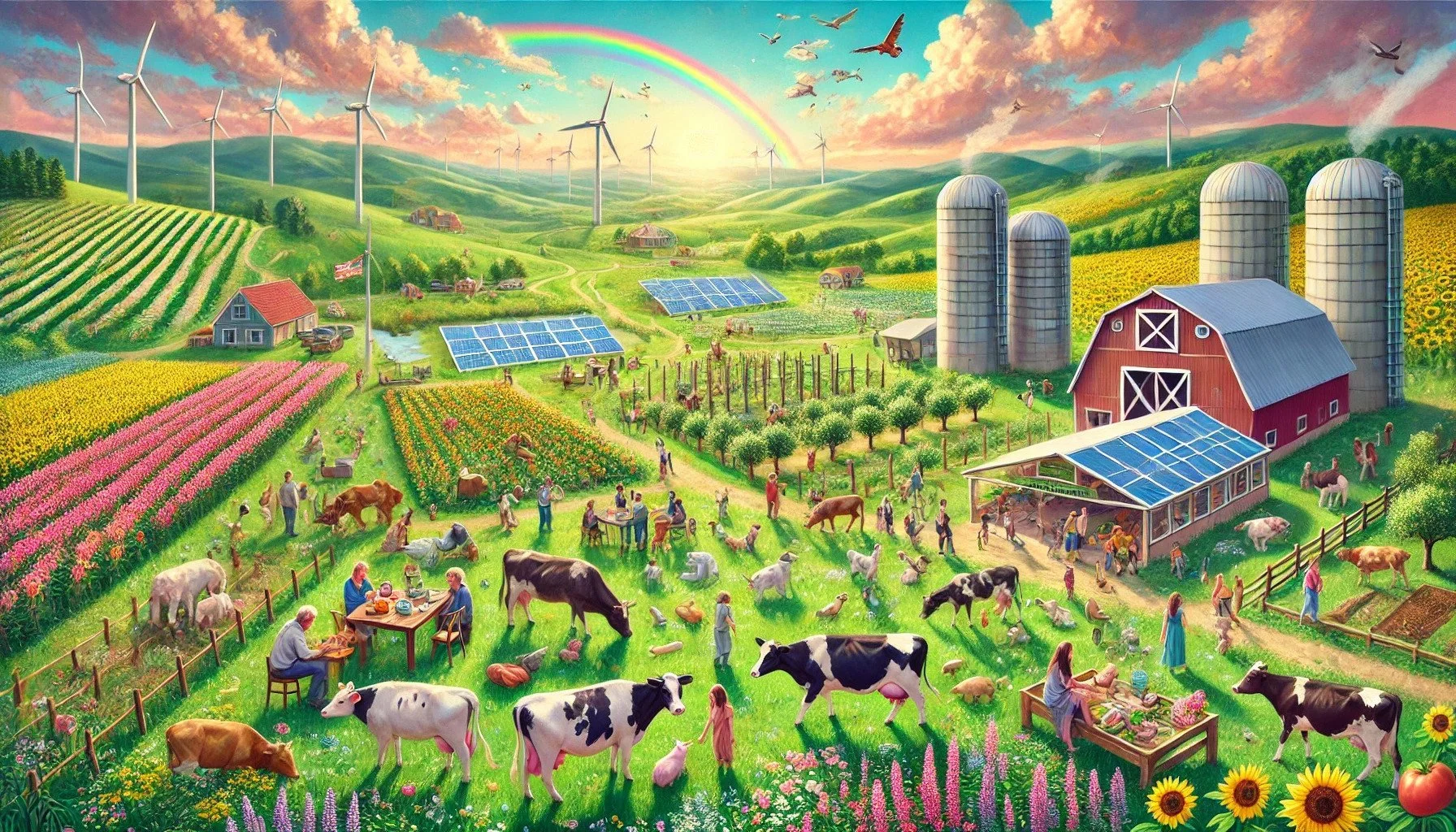 AI's depiction of a humane, sustainable food system in 2025—can you spot the oddities? ;)